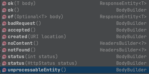 = ResponseEntity Class Method 문서 참조
