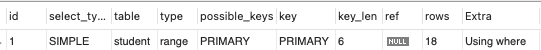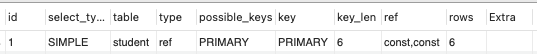 EXPLAIN SELECT * FROM student WHERE student_grade = 6 AND student_class = 1;