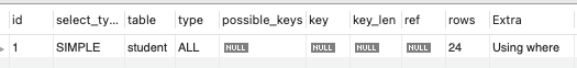EXPLAIN SELECT * FROM student WHERE student_class = 1;